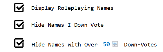 Roleplaying Name: before players are able to edit their name, they must select a roleplaying name.