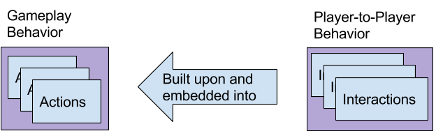 Overview We believe that those games that have had the longest lifespans and richest histories are so long-lived because of the metagames that have grown around them. These are games like popular sports, like Baseball, or more traditional games like Poker, Magic: The Gathering, and Chess. We believe that metagames can (and should) be considered part of the complete design of a game. We hope to produce a list of features and elements of games that can help metagames appear and thrive. Defining “Metagame” We have defined a game’s ‘Metagame’ as any interaction about the game that occurs between game sessions, including simple thought about the game. That is, we include the act of anticipating and planning the cool things you’ll do when you next play as the simplest kind of metagame. At the most complex, a metagame can include guilds and leagues that form around individual games. Types of Metagames As Game Designers, we are responsible for the players’ experience of our games. This experience begins the first time a screenshot is seen and continues through the last joyful memory of the game. The actual game-play is just a small portion in a larger experience. This larger experience that surrounds the core game is the metagame. It includes: Watercooler Talk, youTube Videos, Walk-throughs Sharing and discussing the game is the simplest social form of metagame. This is where new strategies propagate through the player community. There is more detail later in this report regarding building game features worth discussing. Planning / Preparing for Play The simplest solo form of metagame is the simple act of planning for play. There may be actions that can be taken: training, preparing equipment, or simply anticipating the next session. Gamified Experiences: Badges, Points and Achievements This form of metagame has been used for games and outside of the games industry for all kinds of non-game related activities. Frequent Flier Points are a common example. Much has been written about this as ‘gamification’. Tournaments and League Play (Organized Play) This is an older form of social, competitive metagame. The scale and scope ranges from local bowling leagues, through organizing raids on warcraft, to say, tracking the number of medals won in the Olympics. These additional engagement structures are the enriched fields where the metagame can evolve and community can grow, mutually reinforced. Please note that even the act of organizing a game session with friends is a valuable part of the metagame. Social, Personality-based, and “Outside-the-Game” Strategies An important part of a competitive metagame is knowing and exploiting everything possible about your opponent. Knowing what stadium your team is playing in, or what color deck your opponent is favoring can create opportunities for adjusting your in-game choices and strategies. Economies: Trading, Markets, Auctions and Collecting Acquiring, buying, selling and trading in-game resources (in in-game or out-of-game markets). It could be online “gold”, or rare baseball cards. These are ways people enjoy a game through the economic metagame. Stat-Tracking: Player Rankings, Leaderboards and Fantasy Sports Ranking players based on measurable statistics: RBI’s, time spent in-game, or by the quality of their opponents. Tracking these stats is a metagame in itself; fantasy sports has turned the metagame into an actual game. What all Metagames Have In Common Seeking personal improvement (skill, strategy, status, etc.) through anticipation of opponent behavior, generally via community. Contributors to the metagames are often collaboration-minded fans, beneficial for the game’s player culture in both influence and insight. How Metagames Work This section of the report elaborates on how in-game actions lead to interesting moments and strategies that then become fodder for the game’s metagame. Please note that when we discuss ‘player-to-player’ behavior, this does not exclude single-player games because players can (and do) interact with each other outside of the confines of the game. Basic actions and interactions form respective patterns of core gameplay and player-to-player (P2P) gameplay. That is to say, when a player first learns a new game, they pay close attention to the actions that lead to successes, and then those actions become the building blocks of strategies. However, because players are unique individuals, they do not all find the same strategies. At the Meta layer, players anticipate challenging behavior (whether the opponent is another player, AI, or simply the game environment) based on their own strategies, and then adjust when they are surprised or challenged in a new way. These strategies are communicated through the metagame to other players, who then build them into their own strategies before passing them on to others. In this way, strategies evolve over time, leading to the possibility of out-dated strategies even when the core game has not changed. This ‘Meta’ layer of constantly evolving strategies unifies both the core game and social (meta)game. Of course, strategies (or the potential strategies) must be carefully balanced to prevent a game from becoming ‘solved’ - that is, for one strategy to become and remain dominant. P2P interactions brings strategy dynamics to life, forming what is commonly referred to as the metagame (esp. in competitive games) It is player interactions that make the game dynamics dynamic! Additional engagement structures, such as forums, chat, twitch channel, etc. are the enriched fields where the metagame can evolve and community can grow, mutually reinforced by other players. These provide self-sought, socially validated goals in the metagame layer. Perceived values of rewards drive the “social metagame” - essentially metagame economy: players desire the glory they have earned for playing the game in a ‘better’ way than the players before them. Why You Want 